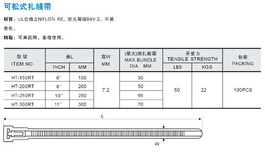 2、活扣尼龙扎带又称可松式扎带可多次使用方便快捷。